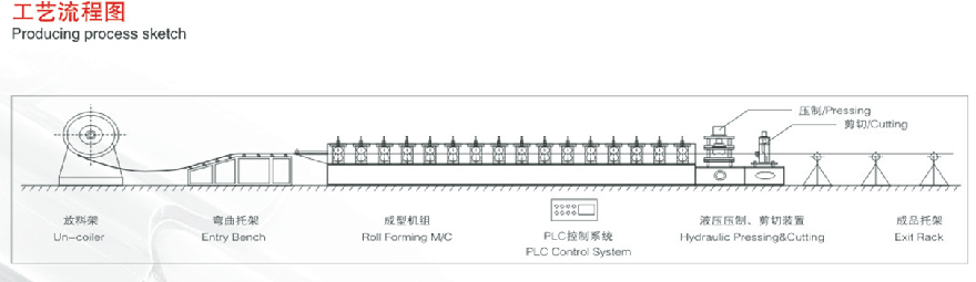 彩钢琉璃瓦设备主要由放料机、进料导入平台、成型主机、冲模压型装置、成型剪切装置、液压站、电脑控制系统、成品托架等几部分组成。