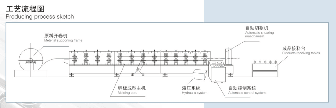 开卷机 成型主机 液压切刀 电控系统 液压系统 出料架