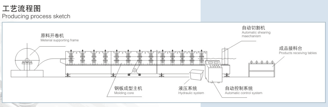 开卷机 成型主机 液压切刀 电控系统 液压系统 出料架